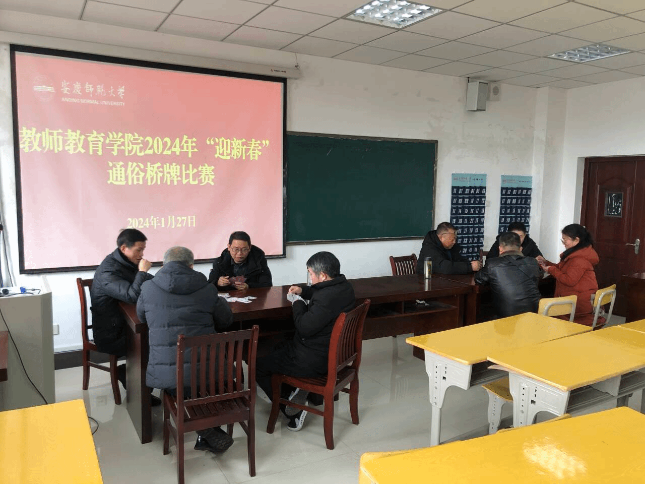 1月27日,教师教育学院分工会组织全体工会会员在龙山校区J305开展“迎新春”通俗桥牌比赛活动。
