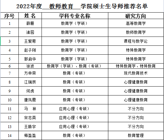 根据学校《关于开展2022年度硕士研究生导师遴选工作的通知》和《98色花堂 硕士研究生指导教师遴选与管理办法》,经教师个人申请、学院学位评定委员会会议研究决定,拟推荐薛珊等29位教师为2022年度硕士研究生导师人选,具体推荐名单如下: