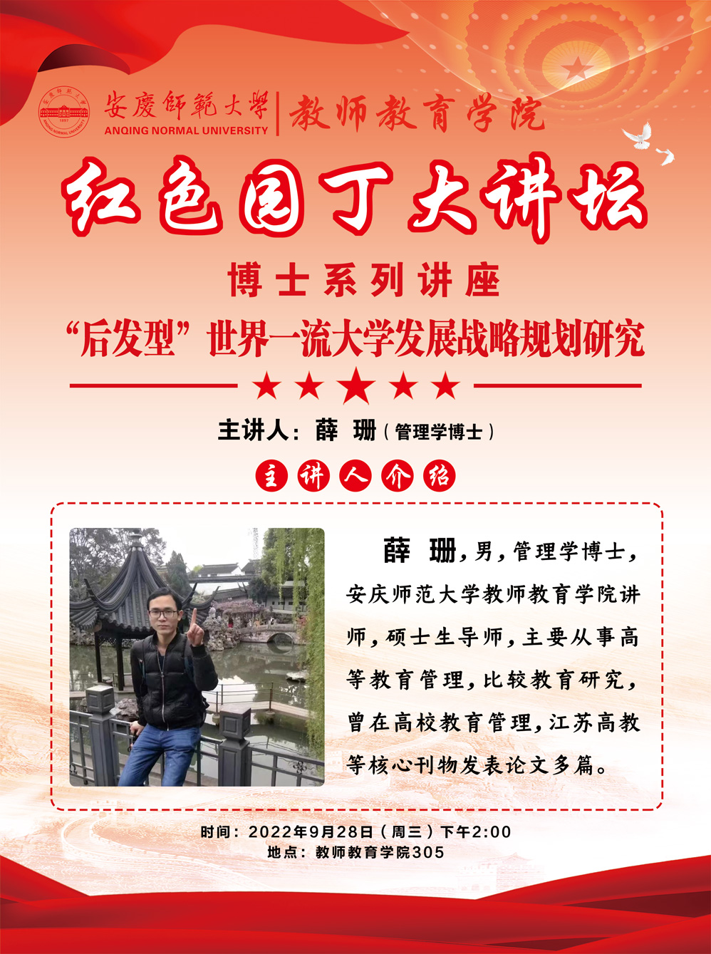 【红色园丁大讲坛】“后发型”世界一流大学发展战略规划研究