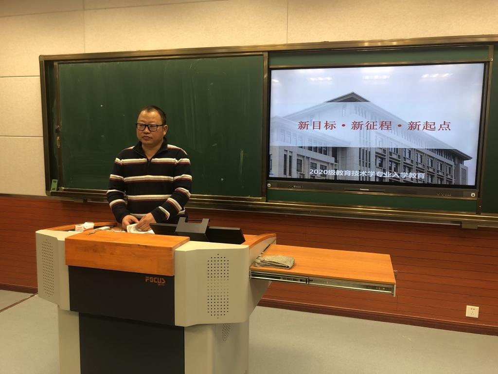教研室主任韦老师也就教师教育学院发展历程,教育技术学专业建设、师资队伍、学生发展等有关内容向2020级新生做了简单介绍,并建议大家在大学四年的生活里主动一点、多想一点、多学一点。