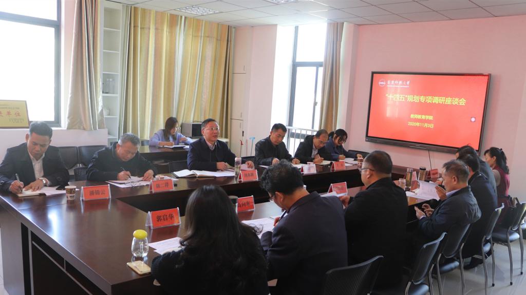 2020年是我国全面建成小康社会和“十三五”规划的决胜收官之年,也是“十四五”谋篇开局之年。11月3日下午,闵永新校长、各职能部门负责人一行来教师教育学院调研,院党委书记曹长德、院长吴云助、院党委副书记许世平、各学科专业负责人等参加会议。
