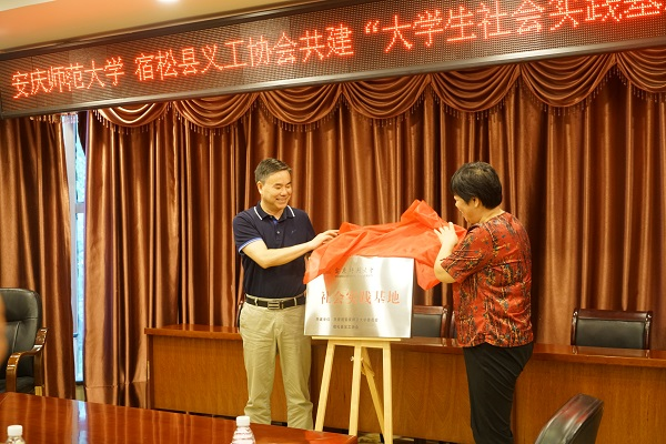 会上,吴照明、郭斯文为“大学生社会实践基地”揭牌,校团委书记与宿松县义工协会负责人签定了《共建“大学生社会实践基地”协议书》。学生代表汇报了“童心向党,乡村逐梦”暑期社会实践工作,义工协会负责人用“多”“快”“好”“省”对本次社会实践做了简要报告。