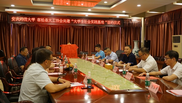与宿松县义工协会共建“大学生社会实践基地”签约仪式在宿松县孚玉山宾馆举行。校党委副书记吴照明、宿松县政协副主席郭斯文出席仪式并揭牌。校团委书记陈东,学院院长吴云助,宿松县关工委、团委及义工协会负责人参加仪式。仪式由学院党委副书记许世平主持。