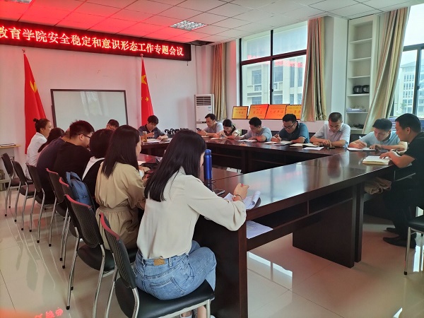 召开安全稳定和意识形态工作专题会议。学院党政班子成员、全体专兼职辅导员、教师教育中心实习实训办公室主任、实验室主任等参加会议。会议由学院党委书记陈志超主持。