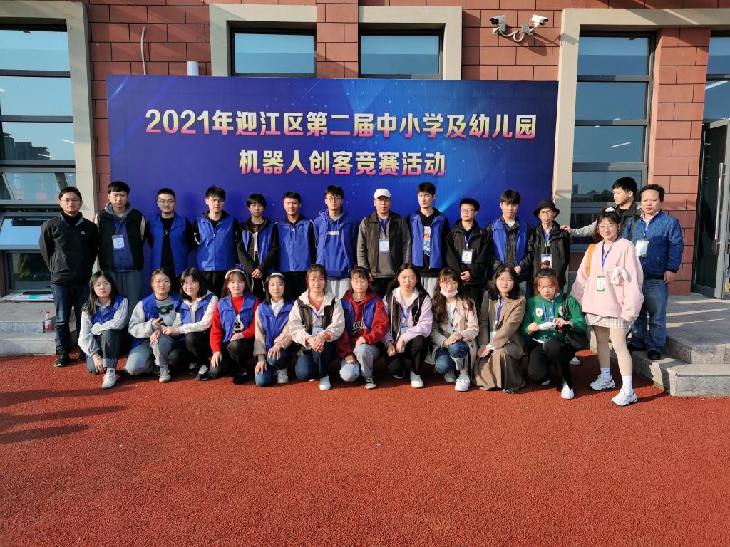 10月24日,受安庆市迎江区教育体育局、迎江区青少年活动中心邀请,教育技术学专业选派16名本科生、4名研究生赴安庆市第十四中学承担“2021年迎江区第二届中小学及幼儿园机器人创客竞赛活动”的裁判工作。由教育技术学教研室万士全老师担任领队。