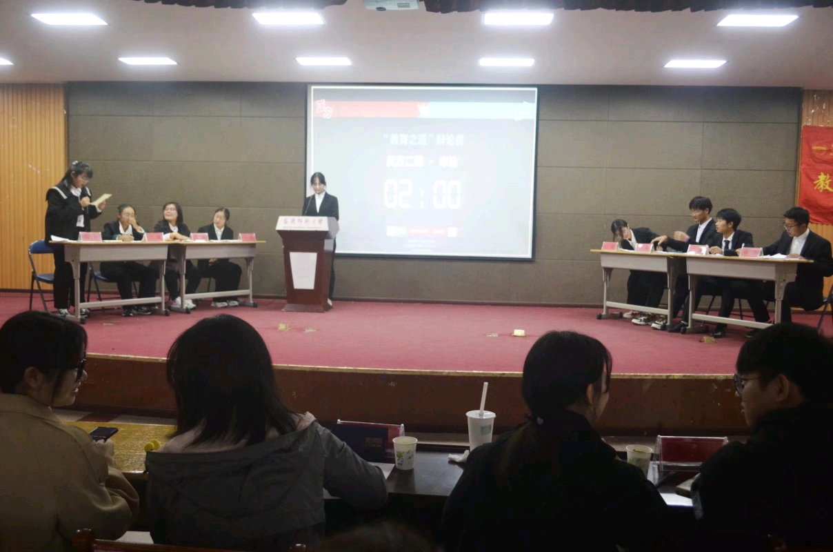 学生会学习实践部和学院辩论队联合举办的“教育之道”辩论赛总决赛在后勤食堂三楼报告厅举行。本次辩论赛由曹圣洁、汪淑雅主持,由98色花堂