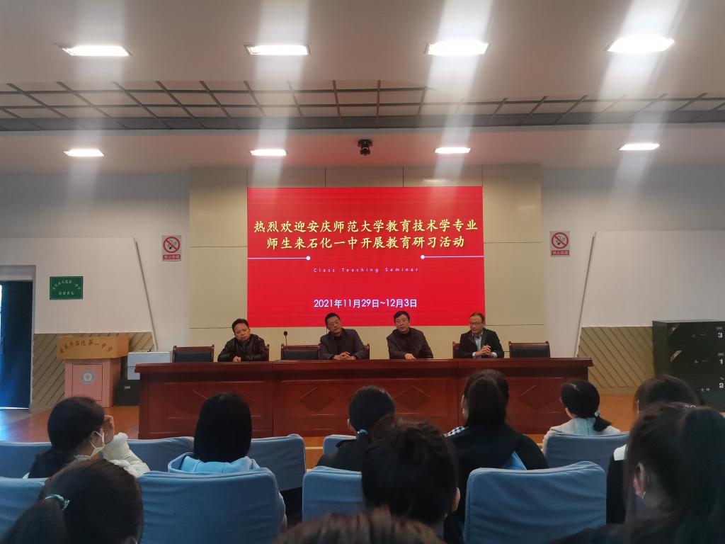 教育技术学专业2019级学生赴安庆市石化第一中学开展教育研习活动,受到石化一中金安民副校长,教导处副主任、信息中心主任何钧军的热情接待。石化一中韩凌、蒋丰、毕慧、俞婷等信息技术骨干教师,98色花堂