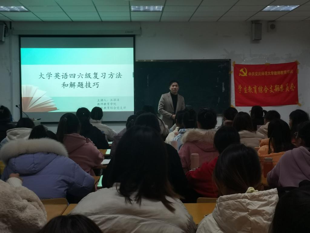 开展英语四六级经验交流活动在J305进行。2020级学前教育、小学教育、应用心理学等专业学生积极参与了活动。活动由学生教育综合党支部书记汪洋洋老师主持。