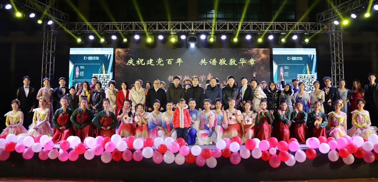 在体育馆举办“庆祝建党百年,共谱敬敷华章”2021年度表彰大会暨第21届敬敷源晚会。学院领导、教师代表和广大同学们共同观看了此次晚会。