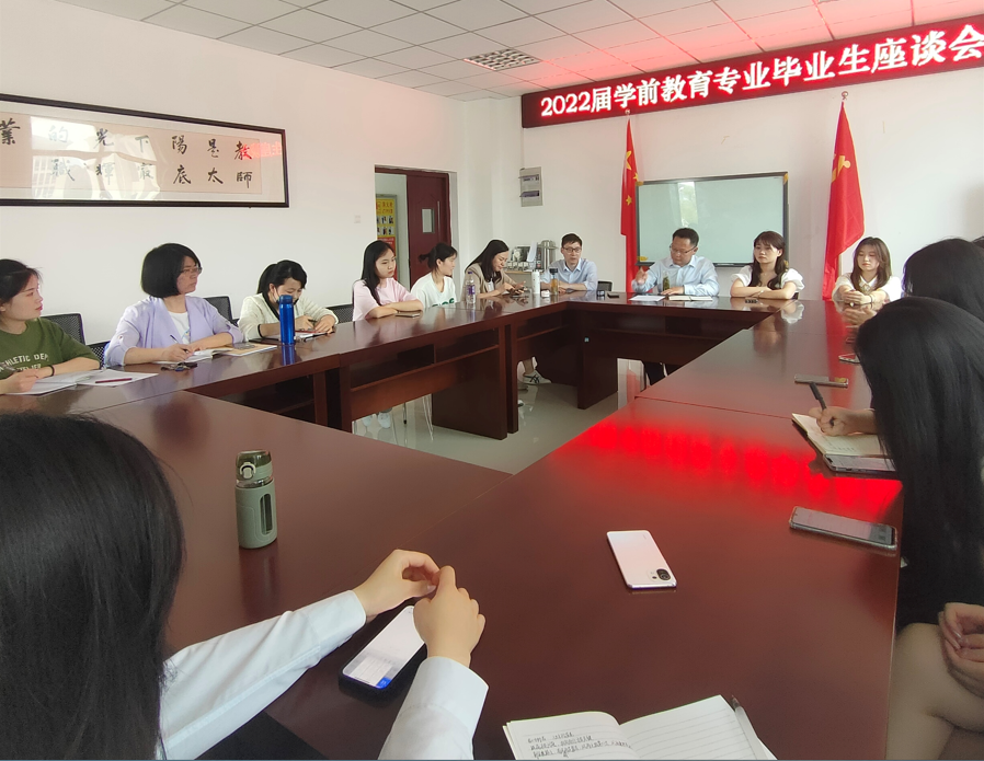 在J202会议室召开学前教育专业毕业生座谈会。学院党委副书记许世平,学前教育教研室主任高向东、教学秘书刘雪梅、学前教育专业教师王颖莉、唐道琴、张亭亭等人出席,学前教育专业毕业生代表参加座谈会。