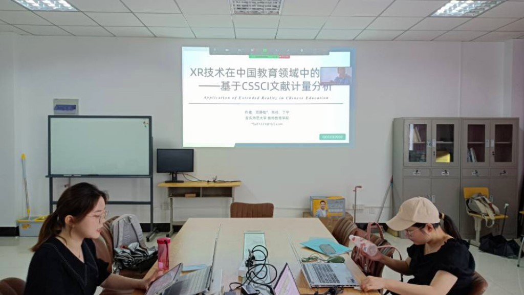 5月31日上午,受大会组委会邀请,范静怡代表论文合作者在Zoom会议室“人工智能教育应用、智慧学习环境”分会场进行线上口头报告,主题是“XR技术在中国教育领域中的应用——基于CSSCI文献计量分析”。该研究成果用文献计量学方法,以中国知网CSSCI库检索到的期刊论文为研究对象,借助CiteSpace工具从作者、机构、高频词等角度分析XR技术在中国教育领域的研究现状,并指出XR技术在教育中应用有三大趋势:研究主题多元、研究技术融合、研究角度微观。最后建议加强研究合作,重视研究团队形成,增强实践应用意识等。
