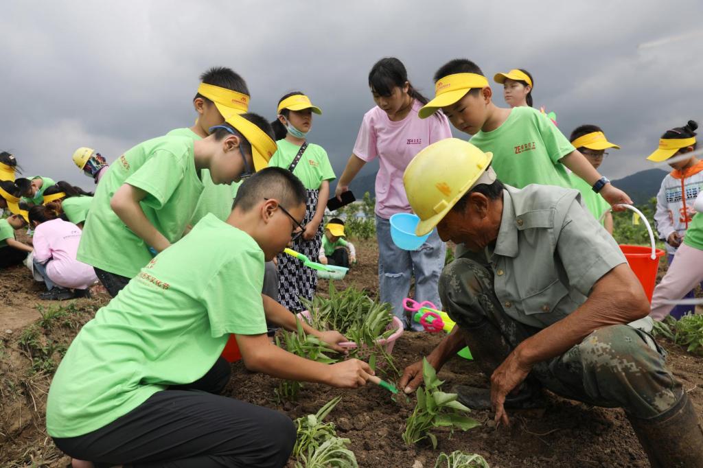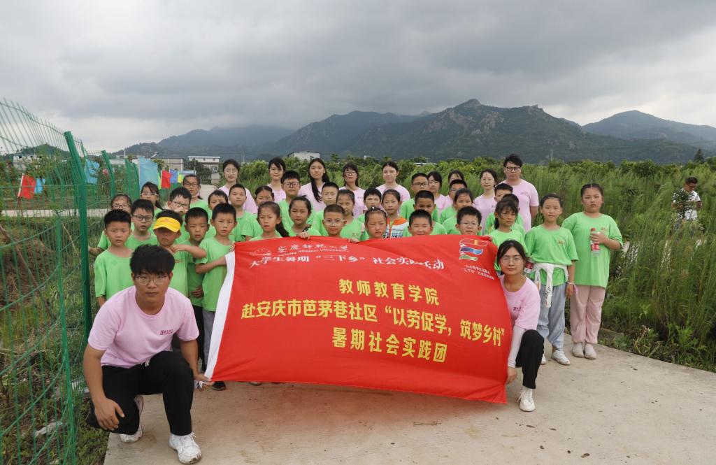 “以劳促学,筑梦乡村”教育关爱实践团与40名小朋友赴安庆市象山村开展暑期实践之农事耕种活动。