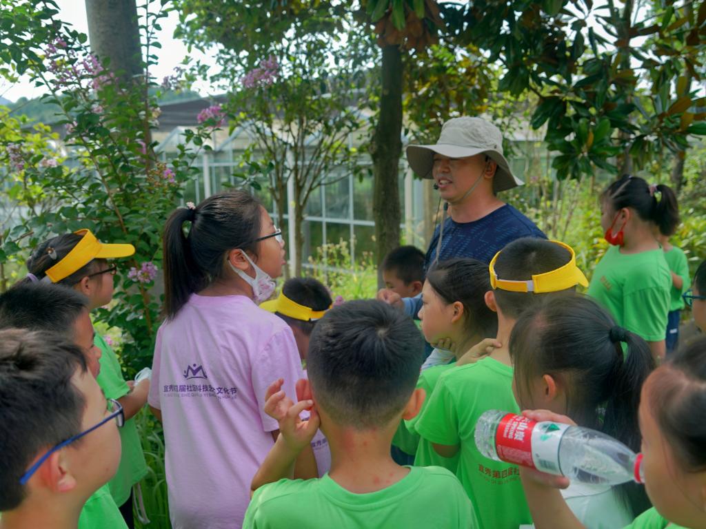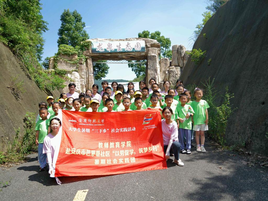 教师教育学院"以劳促学,筑梦乡村"教育关爱实践团和卓尔社区志愿者共同组织第四届宜秀文化科技艺术节暨首届农耕科普节小朋友赴安庆市五横龙泉生态农庄开展果园科普活动。