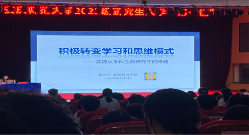 郭启华教授受邀作为导师代表为2022级全体研究生做学习方法讲座。