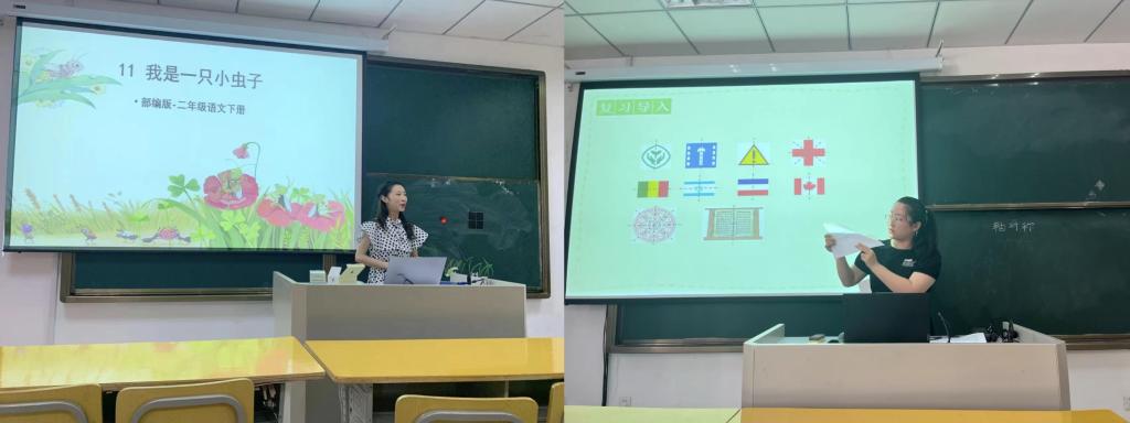 本次比赛对标安徽省技能大赛的赛事要求,按照小学组省赛项目规程和打分标准,主要从教学设计和模拟上课、现场问答等三个环节,重点考核学生的教态、教法以及新课标的理解与掌握,全面考查小教师范生的综合教学能力。