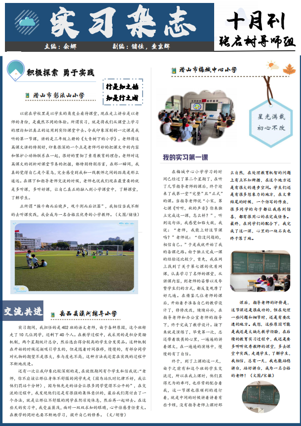 “红色园丁”教育实习简报(诸园导师组)