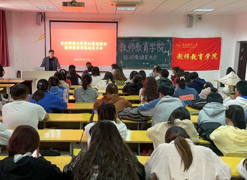 院体育部负责人介绍了本次运动会的主要流程及相关注意事项。学生代表表示,希望运动员在赛场上不断超越自我,为教师教育学院增光添彩。动员大会的最后,运动员代表表示:“通过每日坚持不懈的训练,我们做好了充分的准备,在运动会中会秉持更高、更快、更强的运动精神,挑战自我,超越自我!”