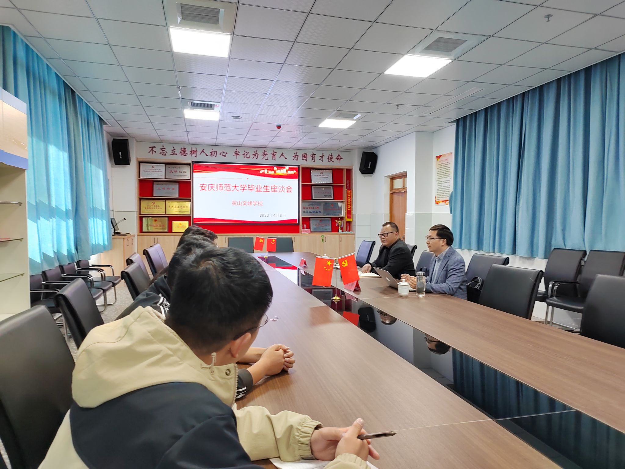 的人才培养质量,4月8日下午,教师教育学院在黄山文峰学校召开毕业生座谈会。执行院长吴云助、教师彭文超和潘日余,以及十余名往届毕业生参加此次座谈会,座谈会由彭文超主持。