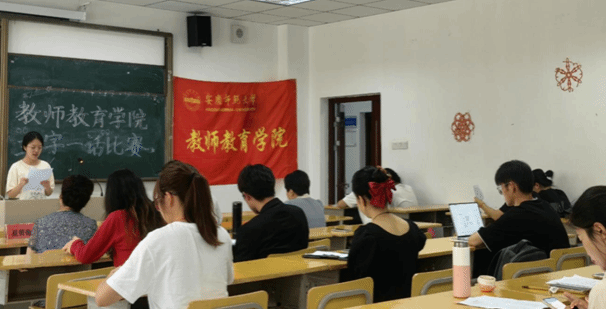举办了师范生“三字一话”基本功大赛选拔赛,分布在J101、104、106教室举行,安庆市华二小校长王作宾、安庆市健康路小学校长夏蕾蕾及熊晖老师等老师受邀担任评委。