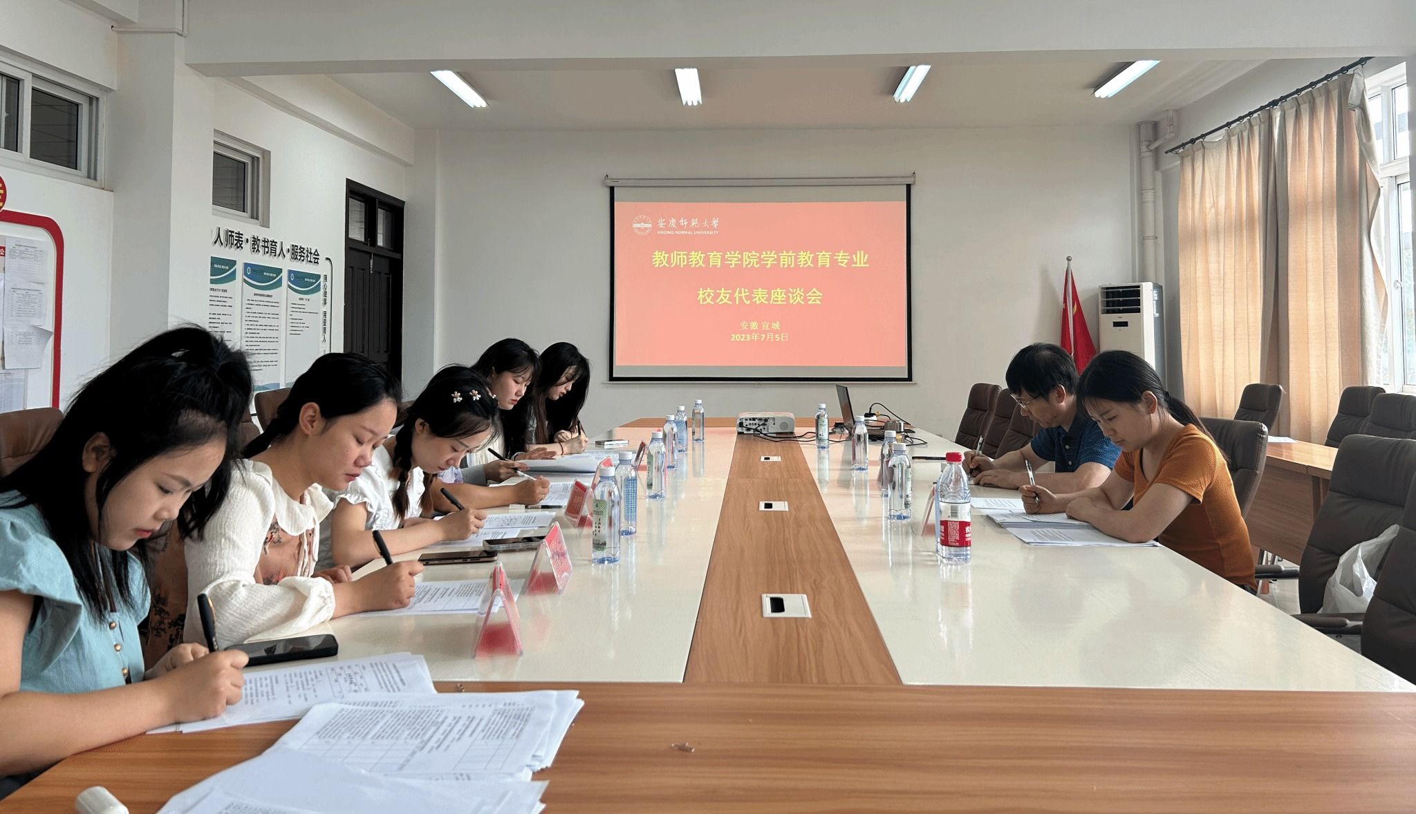 为持续推进学前教育专业的人才培养质量稳步提升,结合学前教育专业认证的“产出导向”需求,7月5日上午,由学院党委副书记许世平带队的学前教育专业调研小组在宣城分别召开了用人单位座谈会和校友座谈会。