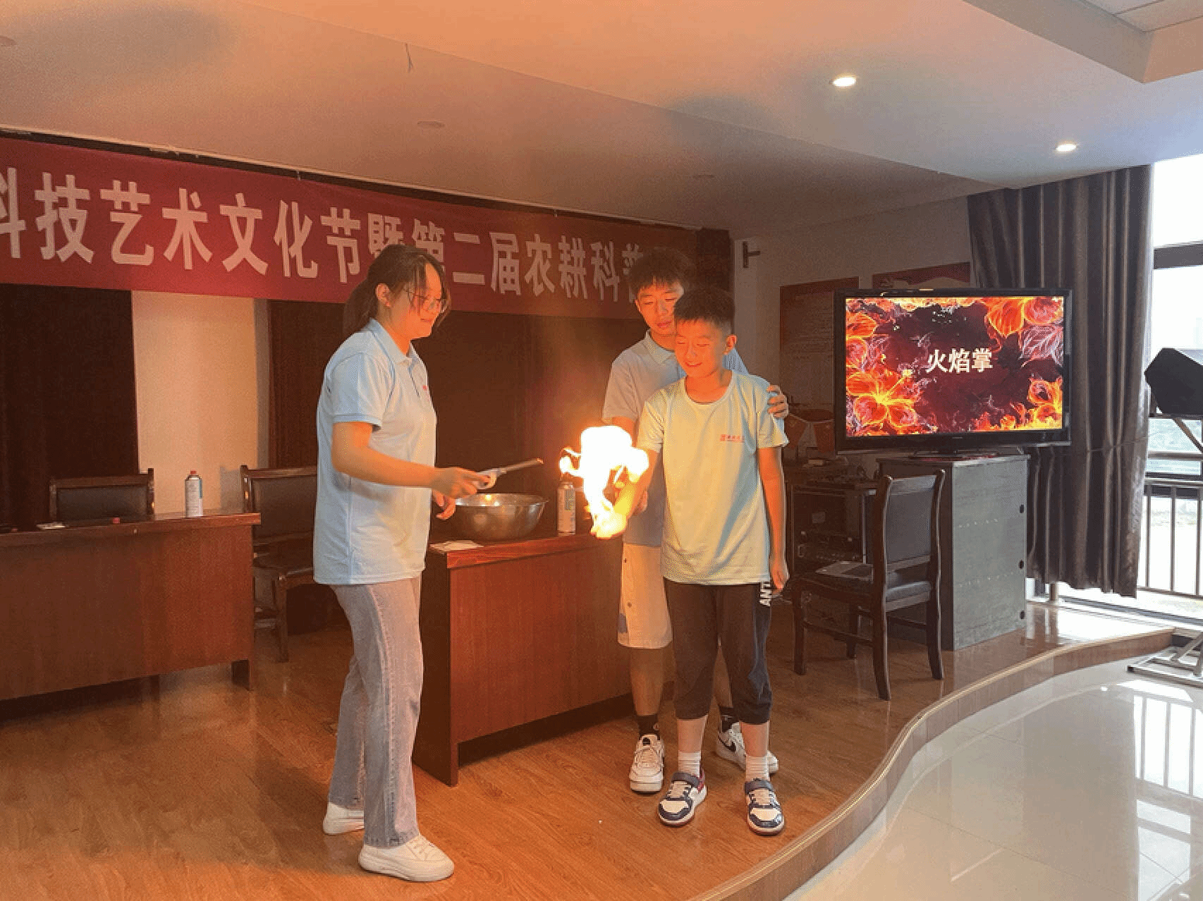教师教育学院“科学筑梦,智引未来”教育关爱实践团带领2023宜秀科技艺术文化节43名小朋友开展第三节特色化学实践课程——“火焰掌”,让孩子们零距离感受科学的神奇魅力。