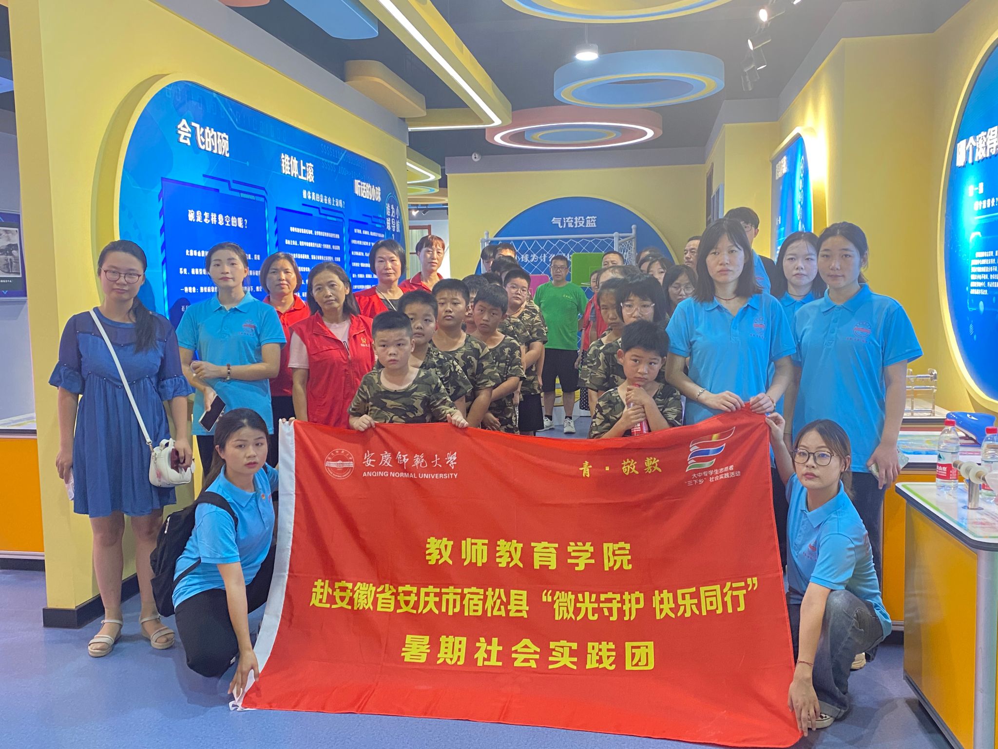 “微光守护,快乐同行”暑期社会实践团带领学生参观宿松县科技馆,感受科技创新的魅力。