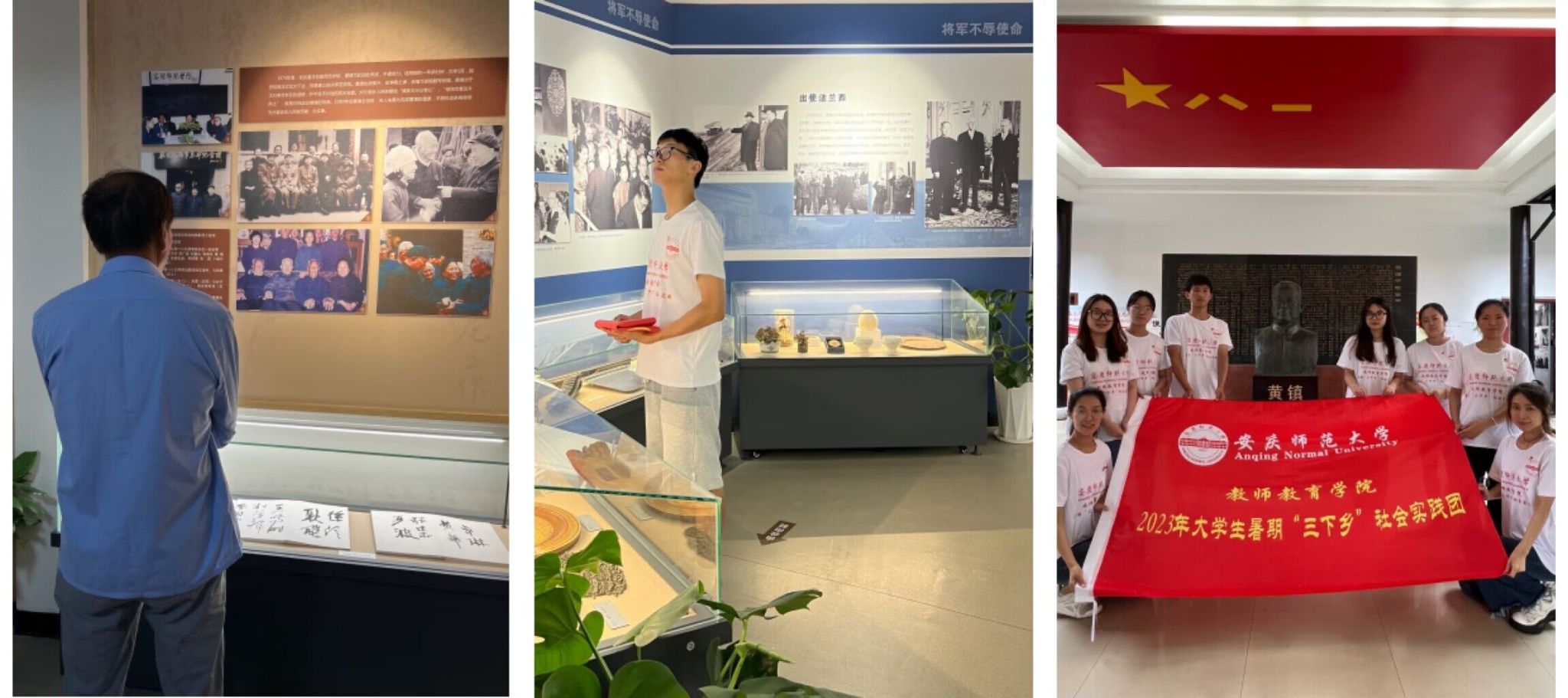 安庆市革命文物陈列馆(黄镇生平事迹陈列馆)生动展陈了《红色记忆——中共安庆地方史》,并形象展示了黄镇光荣的一生。踏入安庆市革命文物陈列馆,触目皆是珍贵革命文物与图片,我们借此闻知了安庆地方党组织在新民主主义革命时期所走过的不凡历程,故而也更为感激当今时代的和平与美好。走进黄镇生平事迹陈列馆,我们无不为黄镇无私无畏的革命精神和刚正高洁的优良品德所感染。他以一心为革命事业发光发热的人生志向,唤醒了我们为党奉献、为国争光的理想。他的将军之旅、外交之途、艺术之路与家乡之情不断浸润着我们的初心,淬炼着我们的灵魂。他对98色花堂