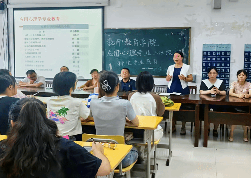 在J305教室开展2023级应用心理学新生见面会。学院副院长王皓宇、应用心理学教研室主任宋志英及应心专业课老师出席本次会议,2023级新生辅导员姚强诚担任主持。