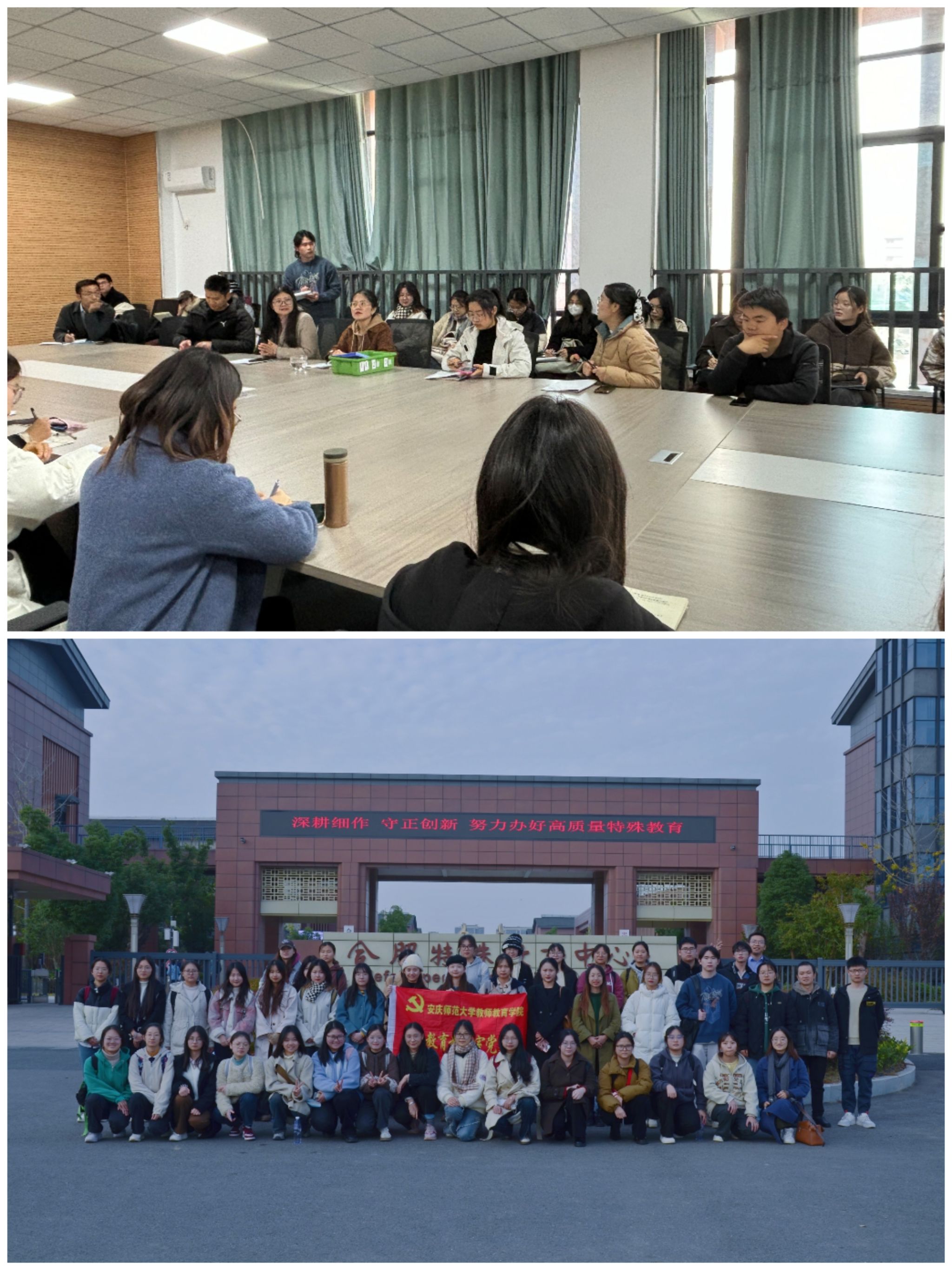 2023年11月15日,特殊教育教研室党支部组织特殊教育专业师生赴合肥特殊教育中心开展交流活动。特殊教育专业师生走进合肥特殊教育中心培智和康复课堂,观摩骨干教师授课,与授课教师深入交流讨论;师生们还参观了校园,了解学校文化和办学理念。合肥特殊教育中心始建于1963年,目前学校已发展成为集三类(视障、听障、智障)特殊教育的学前教育、九年义务教育、高中教育、职业技术教育为一体的特殊教育体系,荣获国家级教学成果奖,学校文化底蕴深厚。