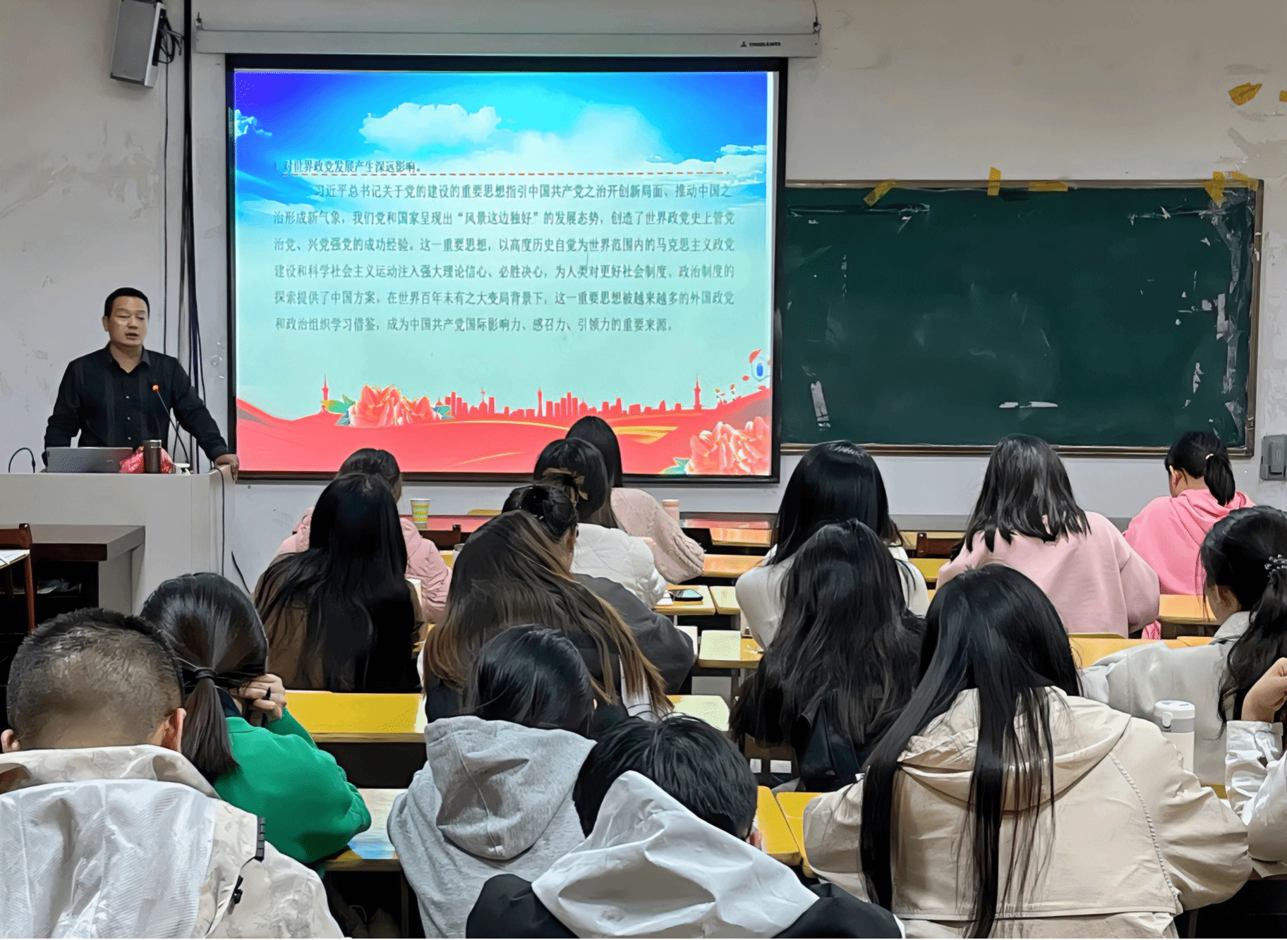 于J305教室开展“习近平总书记关于党的建设的重要思想”主题宣讲。学院副院长王皓宇担任主讲人,全体第68期入党积极分子参加学习。
