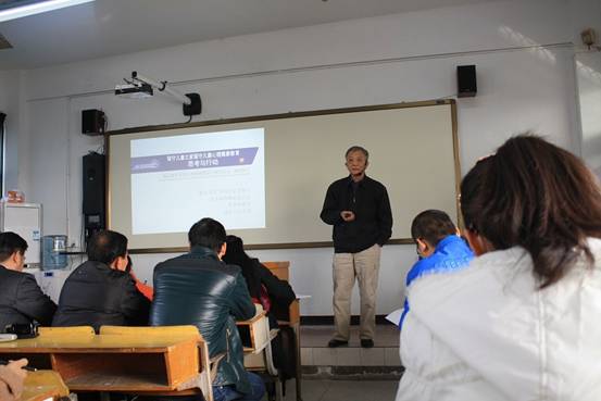 11月17日下午,我们留守儿童之家管理者有幸聆听了南京晓庄学院陶勑恒教授的讲座。讲座一开始,陶教授先与参训学员互动交流,让学员们说说自己对留守儿童的一些认识。之后他一针见血地指出了当代社会对留守儿童的一些误区,如:认为留守儿童普遍表现差,学习成绩差,厌学逃学,有严重心理、道德问题,逆反心理严重等等。他还指出现在社会上对留守儿童关注大,却不是以正确的形式,大多是将留守儿童置于一个低于一般儿童的位置,使其仰视一般儿童。陶教授的演讲风趣幽默又发人深省,场上时常笑声阵阵,但紧跟着笑声的就是学员们的深深沉思。他呼吁留守儿童的教育不能乱弹琴,将留守儿童另类化是不对的。有时候,正是因为社会将留守儿童的问题边缘化,才使得孩子们误解了父母,认为他们常年离家就是不要他们的表现,从而忽视了父母的贡献。同时,陶教授要求我们将留守儿童正常化,将他们看成普通孩子来教育。