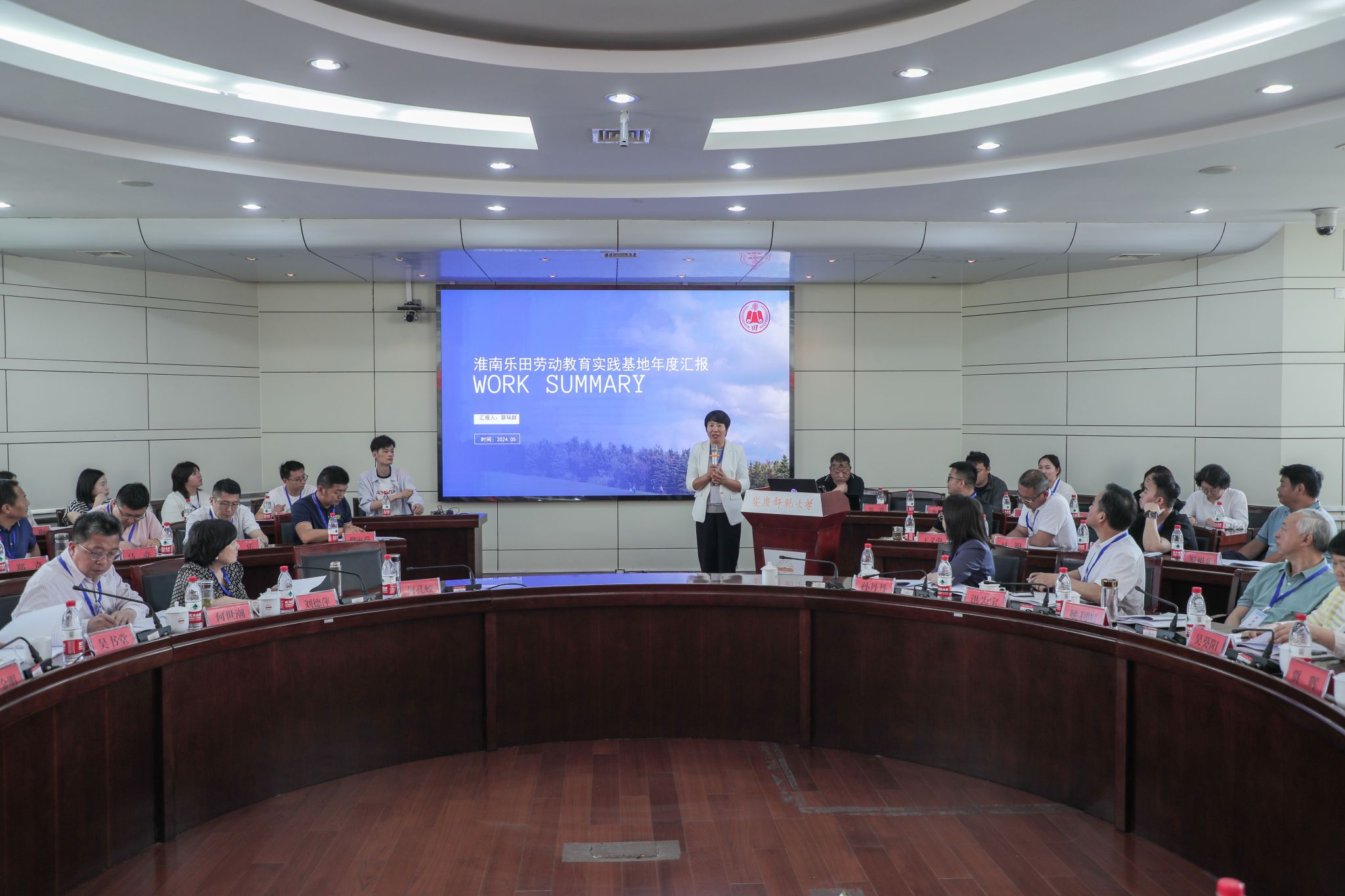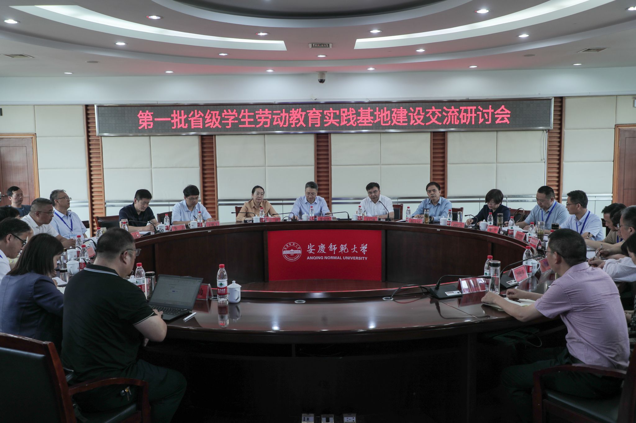党委常委、副校长吴琼主持会议。各市教育局、各省级劳动教育实践基地、安徽大学出版社、中飞数据公司、安徽省劳动教育研究中心办公室、教师教育学院负责人以及中心专兼职研究人员参加会议。