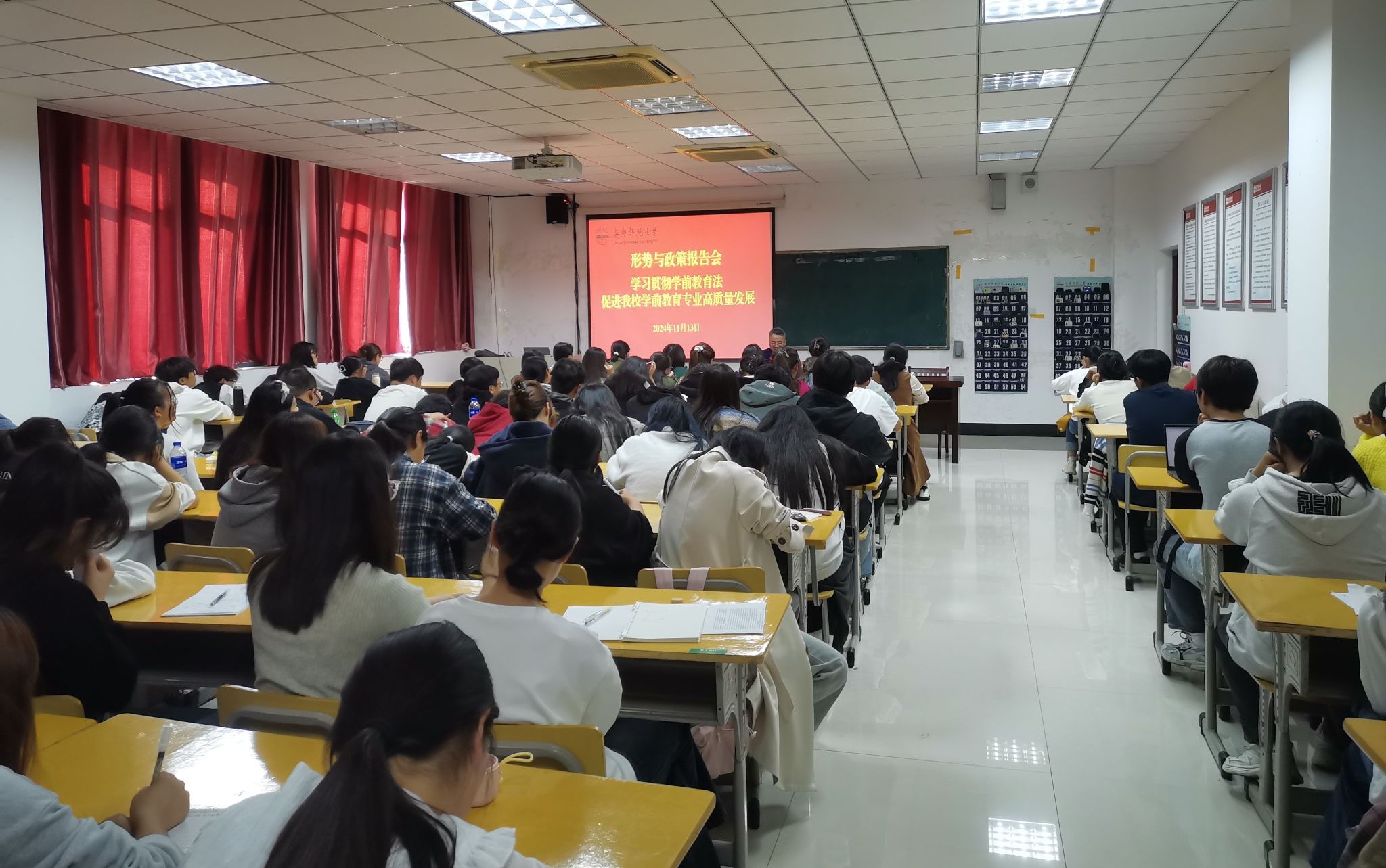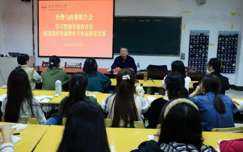 师生作《学习贯彻学前教育法,促进我校学前教育专业高质量发展》的形势与政策报告。