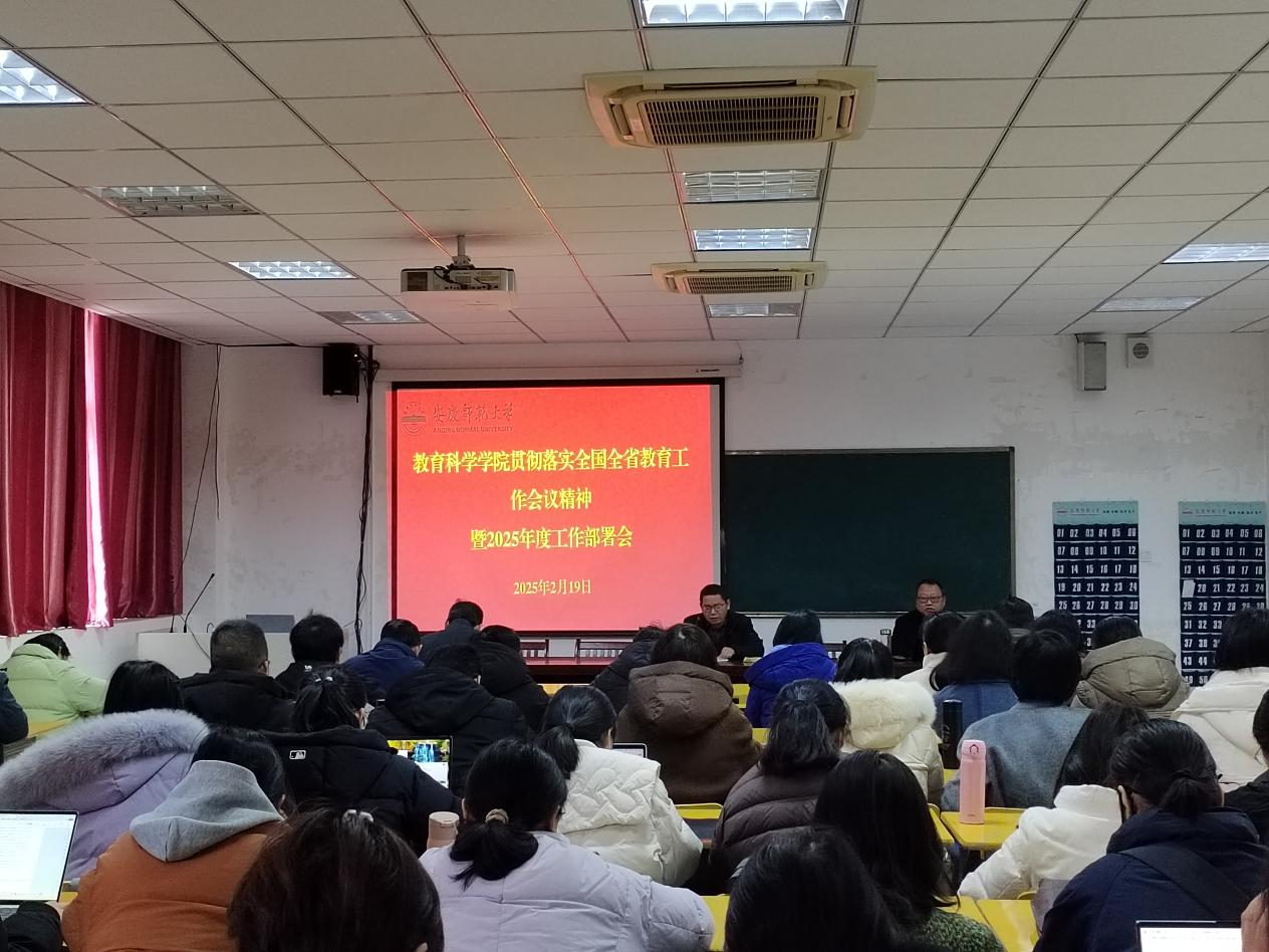 召开贯彻落实全国全省教育工作会议精神暨2025年度工作部署会。学院全体教职工参加会议。党委书记何孔蛟主持会议。