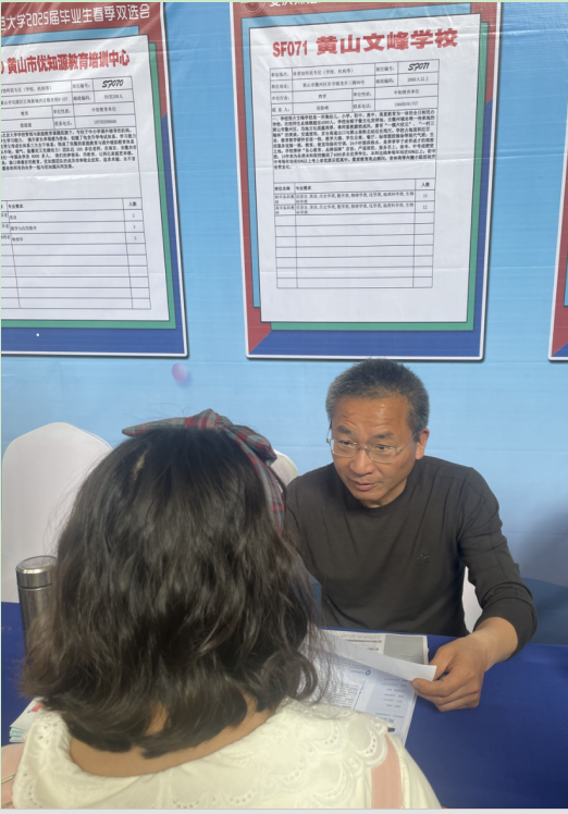 就业基地单位黄山文峰学校、安徽新华幼教集团携学前教育、教育技术、应用心理学等多类岗位需求来校举行专场双选会,吸引众多毕业班学子热情参与。学院领导班子成员、毕业班辅导员全程参与活动。