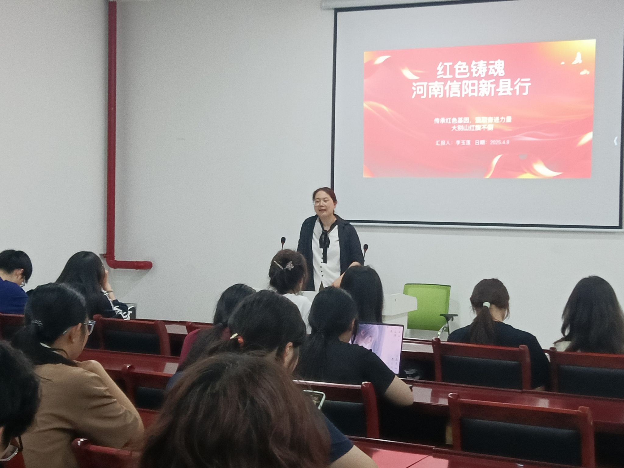 在龙山校区东门“一站式”学生社区学生事务服务中心二楼多功能厅,成功举办了“红色铸魂”河南信阳新县行分享会。本次活动旨在通过分享师生在新县的实践学习经历,进一步弘扬红色文化,传承革命精神,激励广大师生坚定理想信念,厚植家国情怀。
