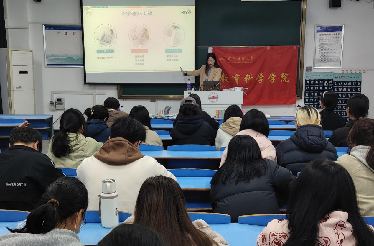 于D403教室举办“梦想启航,一研为定”考研知识讲座。本次讲座由职业规划导师邵琪担任主讲,百余名学子到场学习。