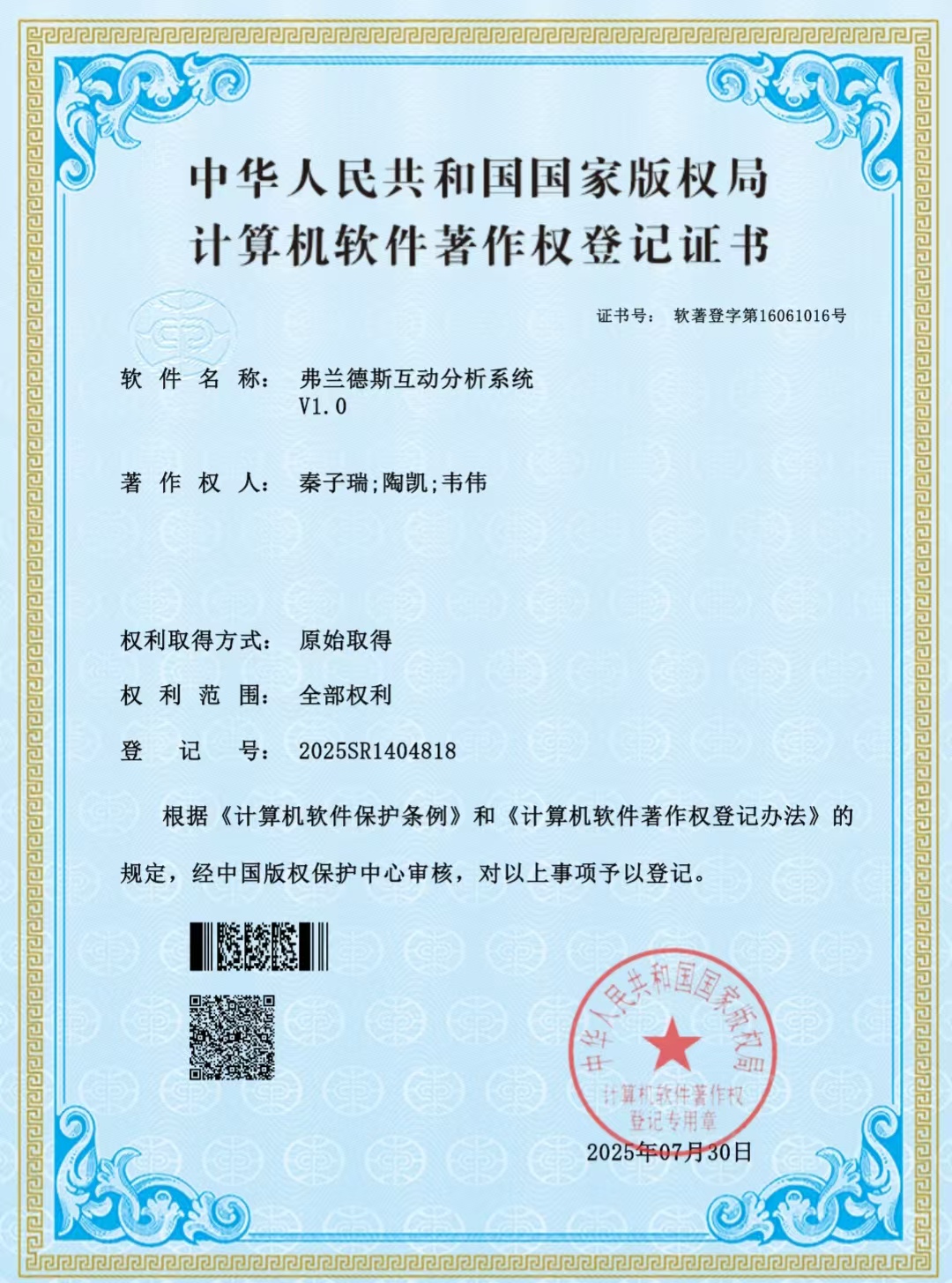 国家计算机软件著作权是指软件开发者或其他权利人依据《中华人民共和国著作权法》《计算机软件保护条例》等法律法规,对其独立开发的计算机软件所享有的专有权利。弗兰德斯互动分析系统(Flanders Interaction Analysis System,简称 FIAS)由美国教育学家内德・弗兰德斯于20世纪60年代提出,是系统化的课堂互动观察工具,至今仍在教育研究、教学诊断与教师专业发展领域发挥着不可替代的作用,为精准解析课堂互动、优化教学过程提供科学支撑。