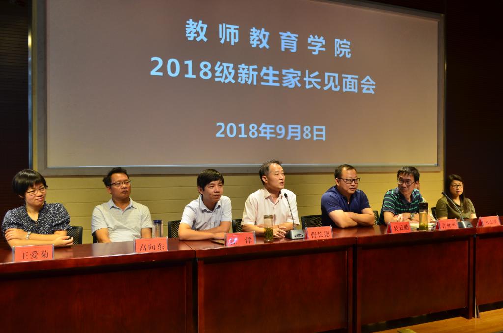 9月8日下午,教师教育学院在D111教室举行了2018级新生家长见面会,学院领导班子、各专业负责人、各科室负责人、全体辅导员和新生家长代表参加了会议,会议由分党委副书记许世平主持。