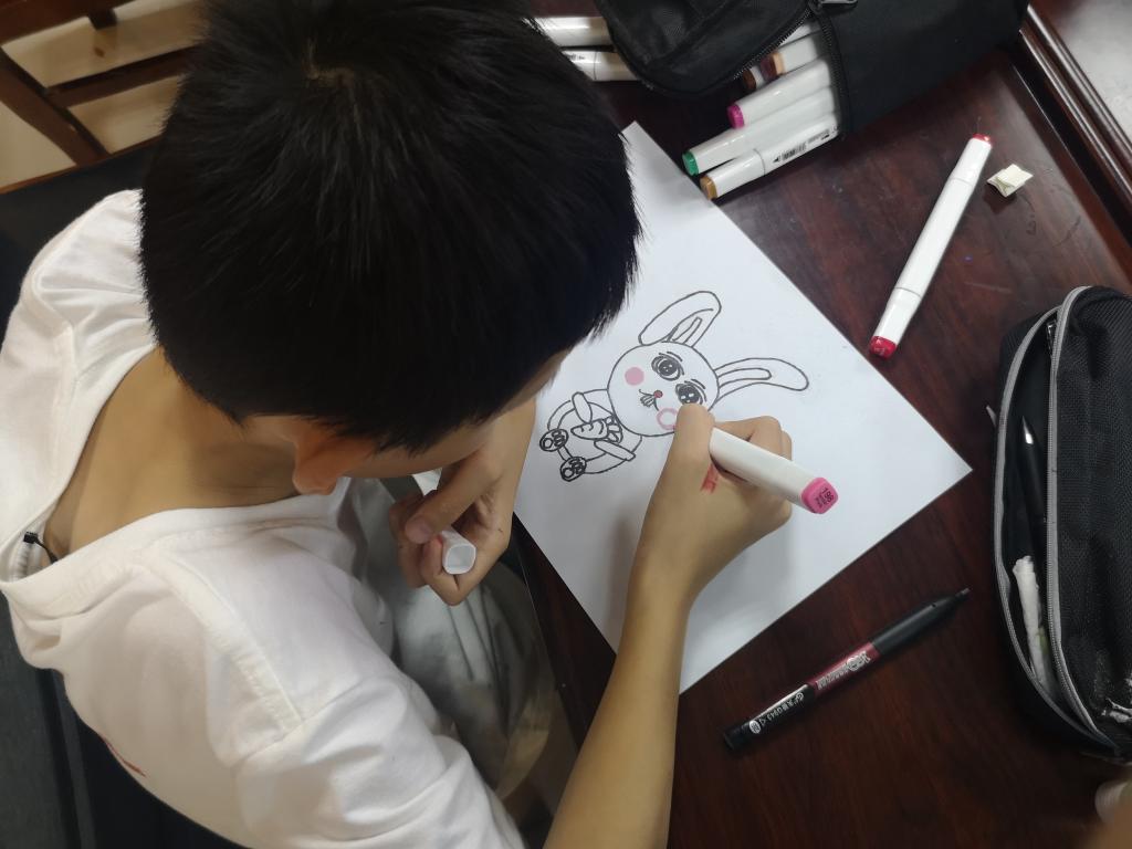 “我非常喜欢跳,并且喜欢吃萝卜,所以我想用小兔子来代表我自己。”杨纪博文开心地说,“我觉得其他小朋友的图画也特别好,我记得最深的是一位同学用舞蹈裙代表自己,因为她很喜欢跳舞,而且她分享说跳舞时可以把自己内心表达出来”。