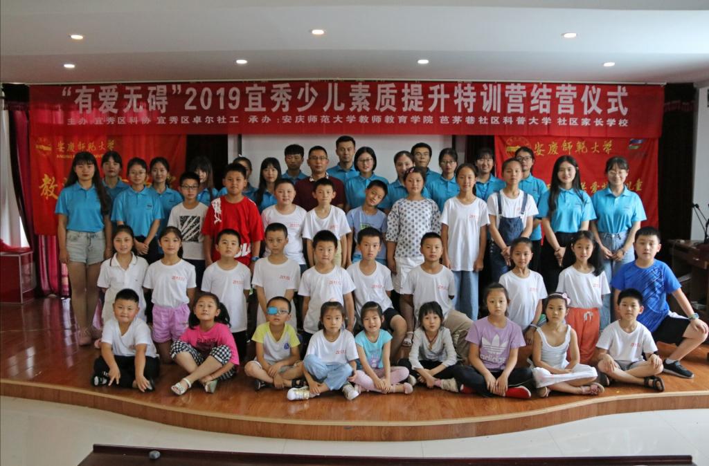 教师教育学院老师陈安定、芭茅巷社居委领导宣庆之、宜秀卓尔社工理事长王奎以及特训营的学生、家长、20名志愿者参加了此次结营仪式。