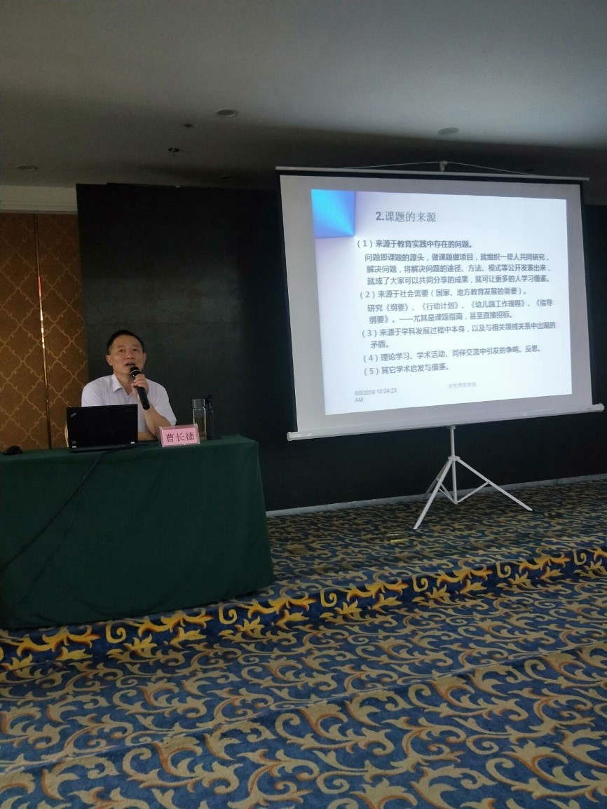 教师教育学院党委书记曹长德教授为普惠性民办幼儿园园长班做《学前教育研究选题与设计方案》专题报告,进而拉开了该培训班为期十天的培训序幕。