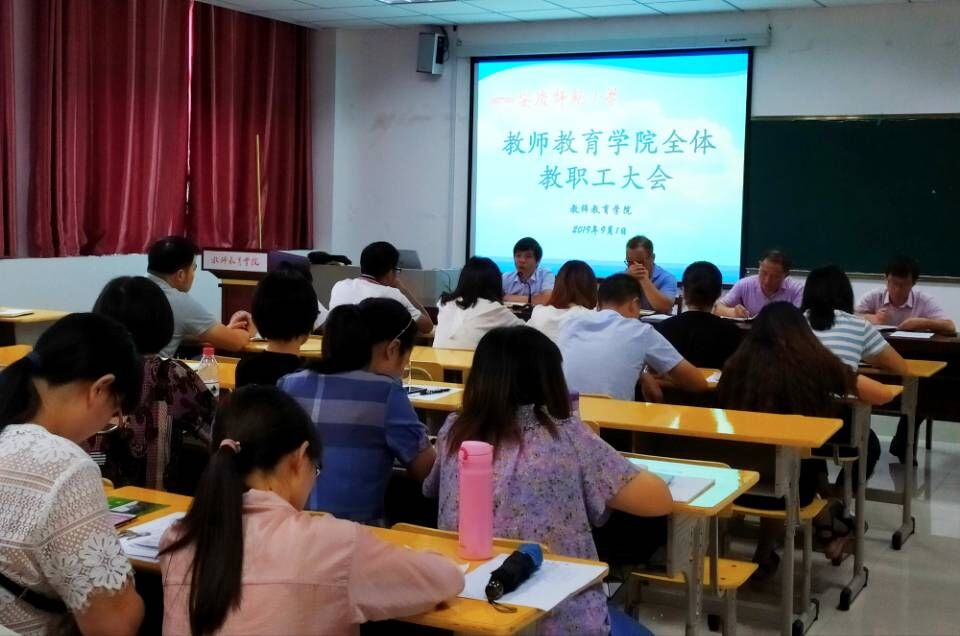 9月1日下午,教师教育学院在J305教室召开新学期第一次全体教职工大会,会议由学院院长吴云助主持,全体教职工参加。