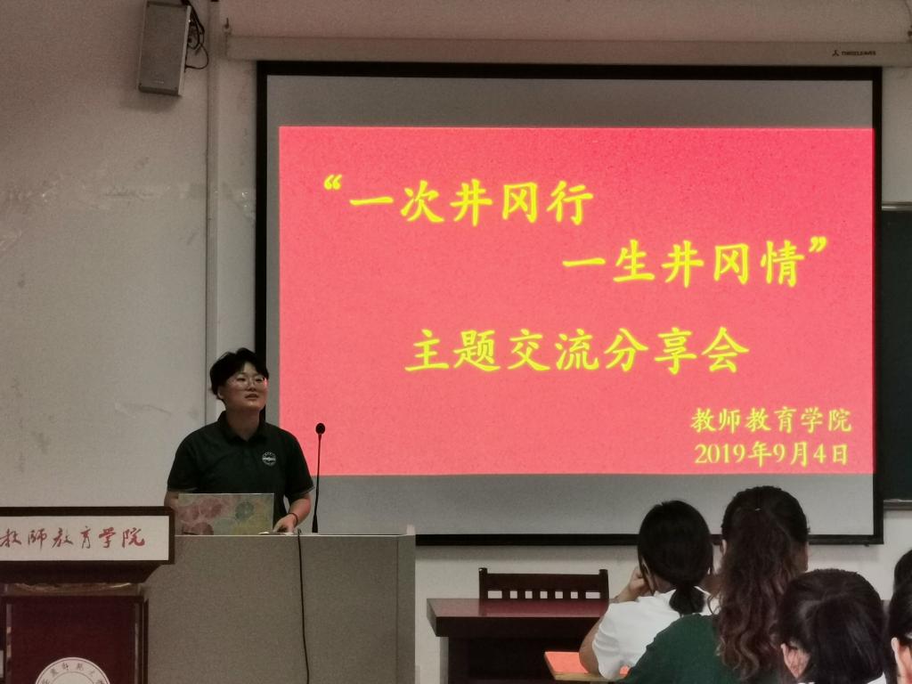 9月4日,学生小学教育党支部开展党日活动,此次活动以“一次井岗行,一生井冈情”为主题的井冈山革命精神交流分享会,由支部预备党员汪晓湉、积极分子庞瑞月分享她们在井冈山培训中的学习内容、实地训练,并且交流了培训心得。