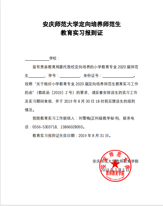 为贯彻《安徽省人民政府办公厅关于实施乡村教师支持计划(2015-2020年)的通知》和安徽省教育厅、安徽省机构编制委员会办公室、安徽省人力资源和社会保障厅、安徽省财政厅《关于定向培养乡村教师的实施意见》等文件的精神,我校于2016年秋季开始承担安徽省定向培养乡村教师的任务,首批141名师范生按照全科型乡村教师的培养规格进行定向培养。根据全科型乡村教师培养方案的要求,进一步完善“卓越化、开放型”教师教育体系,提高定向培养师范生的质量及其与生源地教师教育需求的适应度,教师教育学院于2019年3月开始启动首批定向培养师范生的教育实习工作。