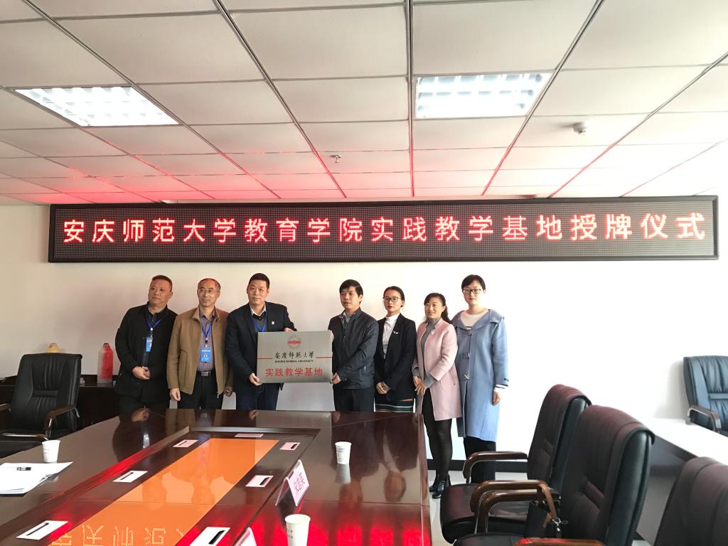 既是精英的摇篮,也是学术的高地。建立实践教学基地是一次宝贵的机遇,希望医院可以借此机会和本地高校实现融合发展,借助高校科研平台,开展更多形式更深层次的合作。交流过后,汪洋和毛以成共同为基地揭牌,标志着教师教育学院与安庆市精神病医院创建的实践基地正式成立。