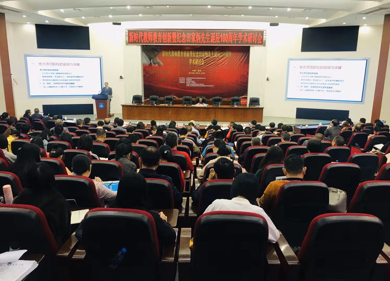 由中国高等教育学会教师教育分会(师范院校协作会)主办、嘉应学院承办、田家炳基金会资助的“新时代教师教育创新暨纪念田家炳先生诞辰100周年”学术研讨会于2019年11月19日至21 日在中国梅州举行。本次研讨会旨在探索新时代教师教育创新的实践与理论问题,促进教师教育学学术交流,同时进一步弘扬田家炳先生兴学重教精神,传承与光大田家炳先生的教育思想,推动教师教育创新和高质量发展。来自北京师范大学、华东师范大学、东北师范大学、陕西师范大学等学校的领导及教师代表200多人参加研讨会。