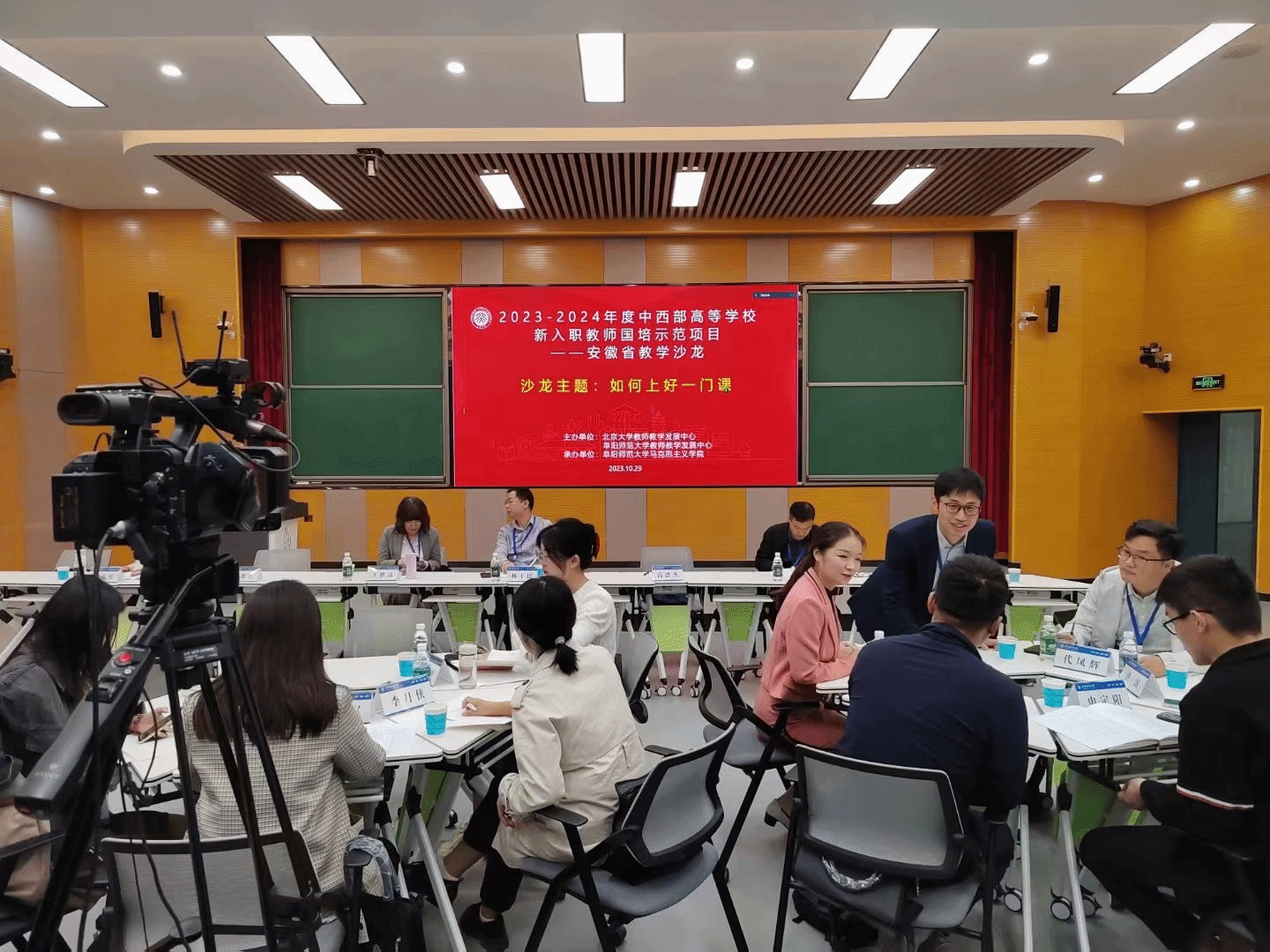 2023年10月29日,由北京大学教师教学发展中心与阜阳师范大学教师教学发展中心主办,阜阳师范大学马克思主义学院承办的"2023—2024年度中西部高校新入职教师教学能力提升国培示范项目“(以下简称“教师教学能力提升国培项目”)——安徽省教学沙龙活动在阜阳师范大学西湖校区化工楼一楼多功能智慧教室举行。