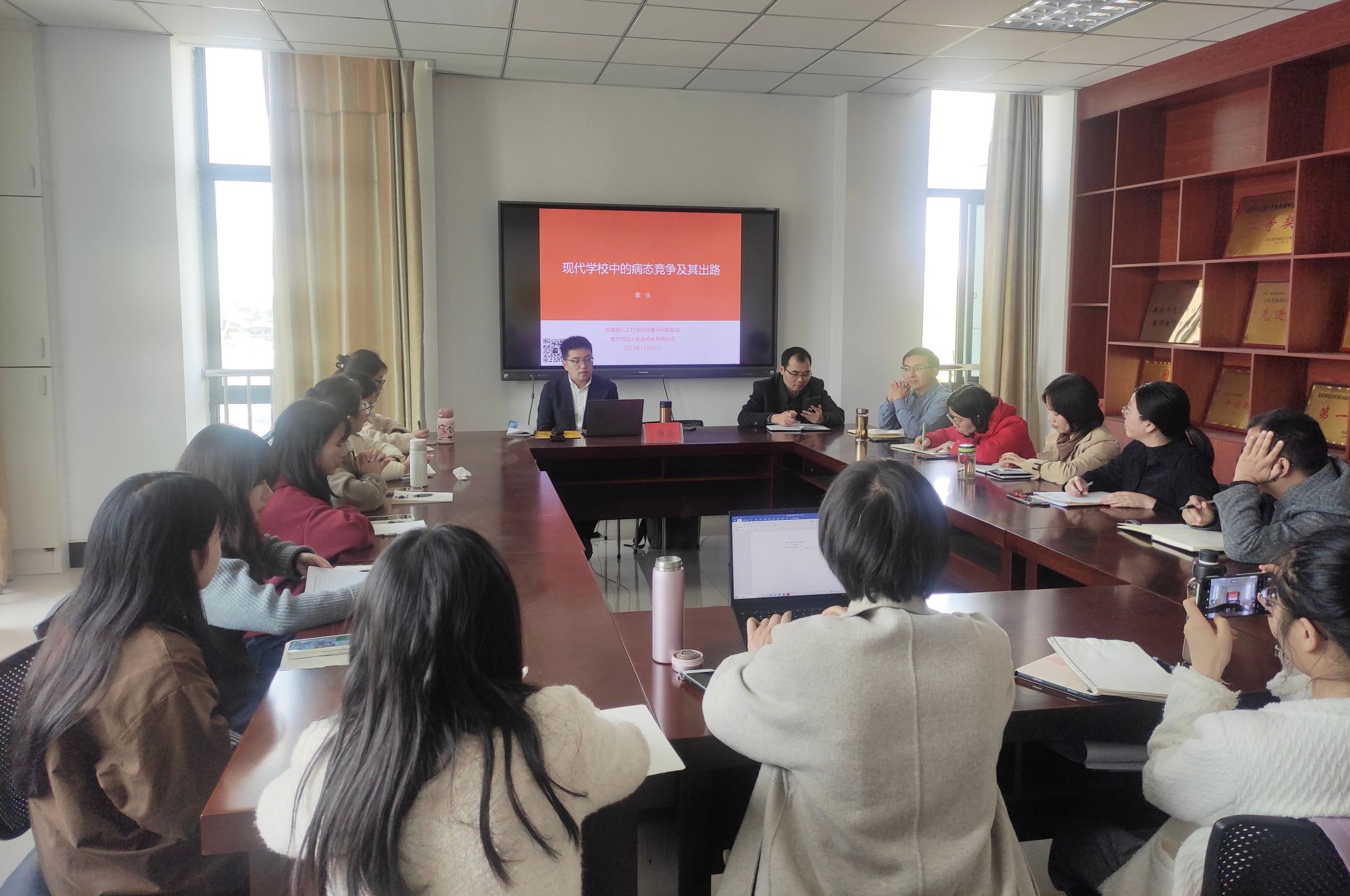 副院长、博士生导师章乐教授应邀在“红色园丁大讲坛”作报告,开展了题为“现代学校中的病态竞争及其出路”的学术讲座,讲座由教师教育学院副院长陈效飞主持,学院部分教师与硕士研究生现场聆听。