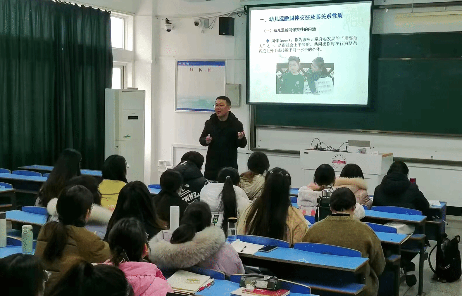 “红色园丁大讲坛”作报告,开展了题为“混龄交往活动:幼儿园不可或缺的教育组织形式”的学术讲座,学院学前教育专业全体硕士研究生、本科生及部分教师现场聆听。
